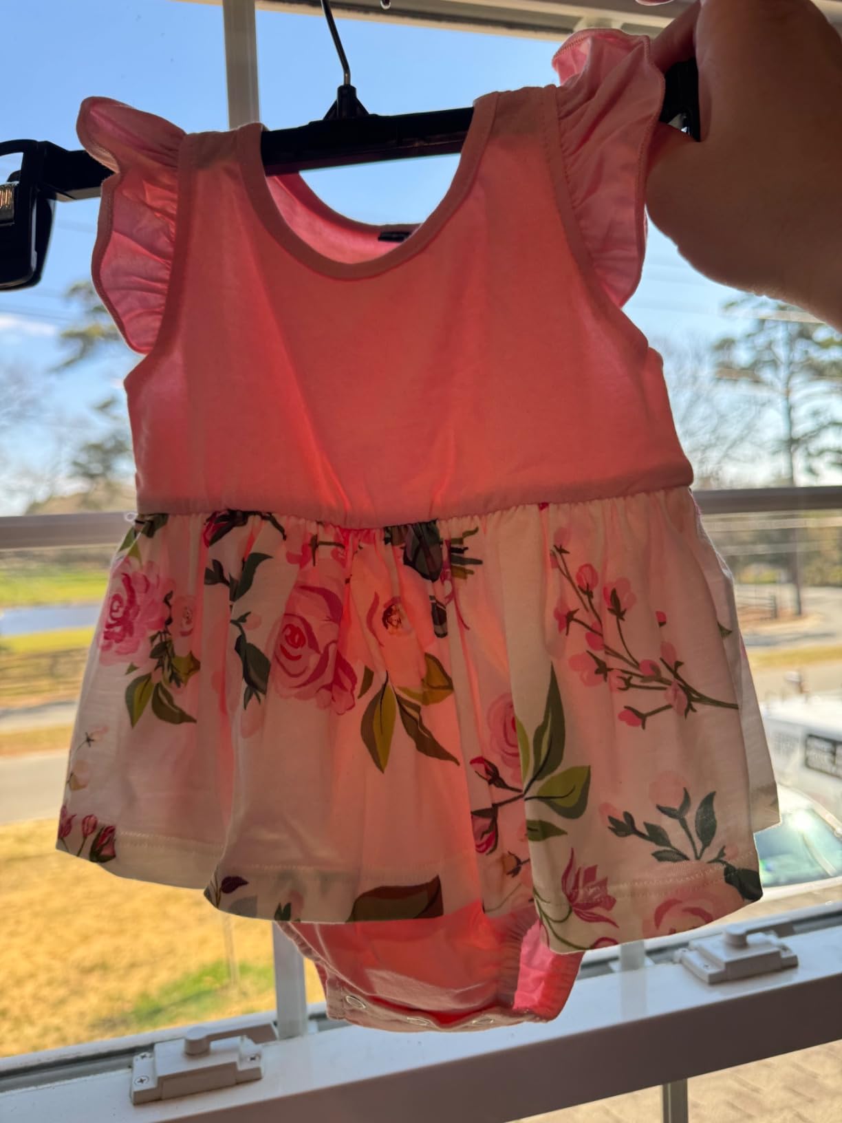 Mommy and Me’s Chiffon Dress Set (women: 40 in., 0.65 lbs, S-3XL; girls: 2T-12Y; babies: 6M-2T) has floral prints, bowknots, and short sleeves. Perfect for beach or Mother’s Day. Machine-washable. 1-year warranty.