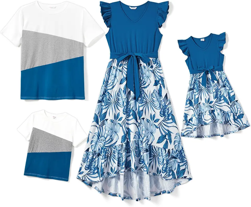 Tropical Ruffle Sleeve Dress and T-Shirt Set